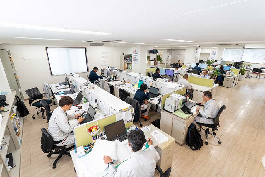 | 従業員数 | 社員35名 【内訳】営業部:6名、設計部:5名、工事部(サービス部):20名、事務:4名 |
