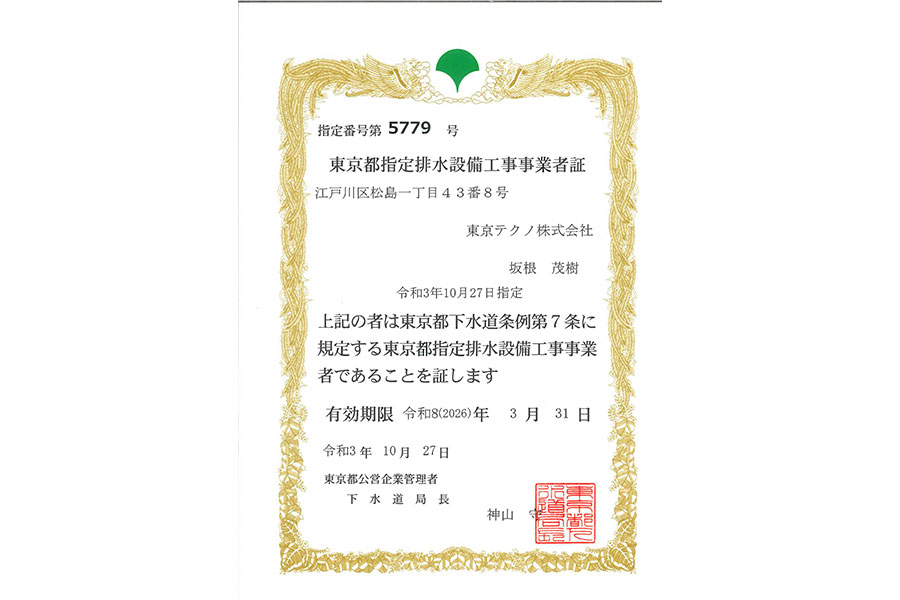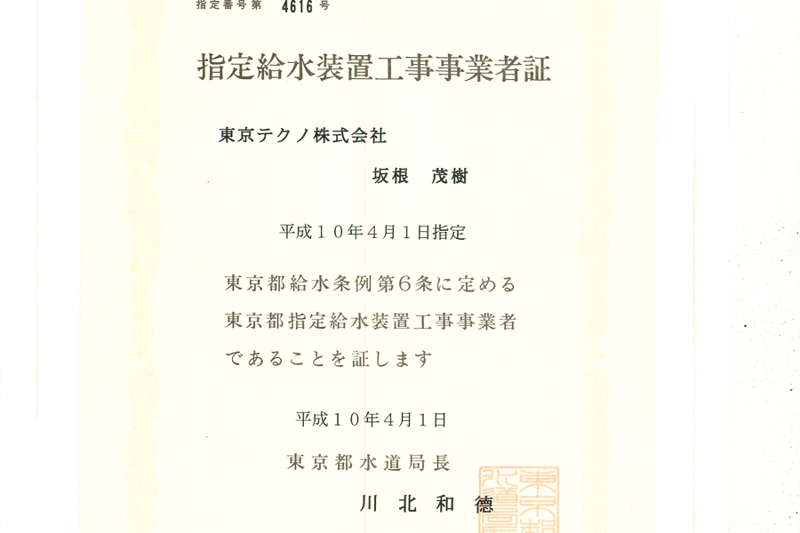| 平成10年4月 | 東京都水道局指定工事店になる |