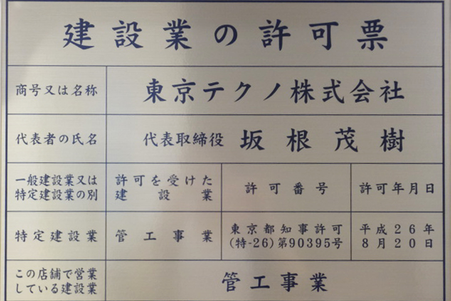 | 技術職員 | 1級管工事施工管理技士 12名 2級管工事施工管理技士 5名 給水装置工事主任技術者 6名 |