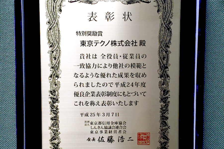 | 平成25年3月 | 東京都信用金庫協会より優良企業として表彰される |